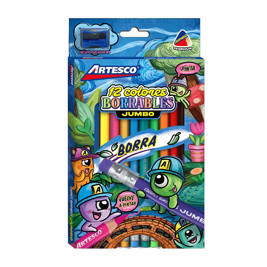 Colores Largos Borrables Jumbo x 12 + Sacapuntas